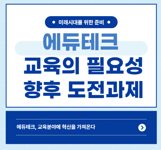 "에듀테크는 디지털 기술을 활용하여 교육을 혁신하는 동시에 학습 경험을 개선하는 분야입니다. 이 글에서는 에듀테크의 개념, 장점, 활용 사례 등에 대해 자세히 알아보겠습니다." 에듀테크는 현대 사회에서 교육 분야에 혁신을 가져온 중요한 개념입니다. 디지털 시대의 발전과 함께 기존의 교육 방식에 한계가 드러나면서, 에듀테크는 이러한 문제를 해결하고자 등장한 것입니다. 에듀테크는 디지털 기술을 활용하여 학습 경험을 향상시키고, 학습자들에게 보다 효과적인 학습 방법을 제공합니다. 에듀테크 교육 필요성 에듀테크의 가장 큰 장점은 개별 학습자의 다양한 학습 스타일과 요구에 맞게 맞춤형 학습 환경을 제공할 수 있다는 점입니다. 기존의 교육 방식은 대부분 교사 중심으로 이루어졌지만, 에듀테크를 통해 학습자 중심의 개..